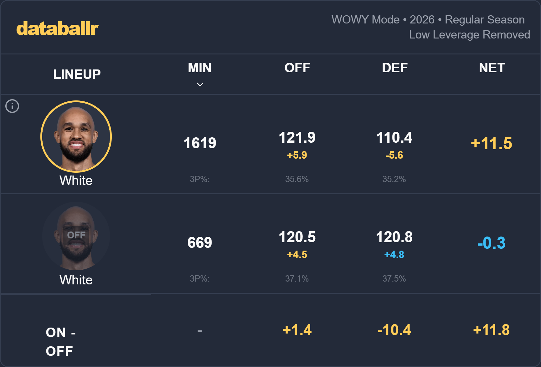 Matured patience allows White to make these reads at the most opportune times, and it’s why he leads his team in four-factor metrics like impact on teammate shot quality.